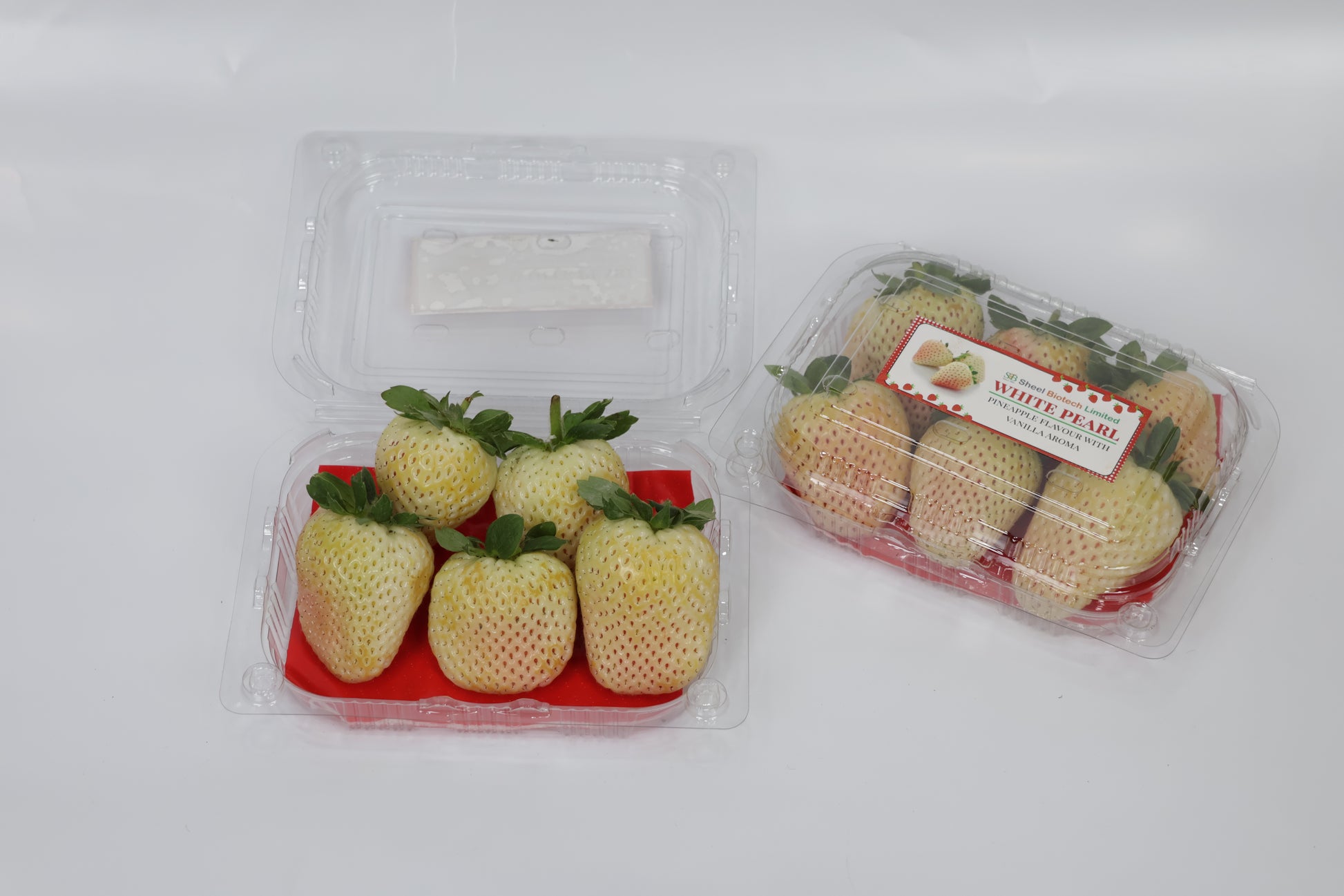 Rare and luxurious Florida Pearl Strawberry, known for its creamy white color, blush pink seeds, and exceptional sweetness. This exotic variety offers a smooth, low-acidity flavor with subtle pineapple like notes, making it a true gourmet delight.